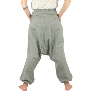 Im Hosensaum der Aladinhose ist ein Gummizug eingenäht. Damit lässt sich diese ebenfalls als 3/4 Hose tragen.