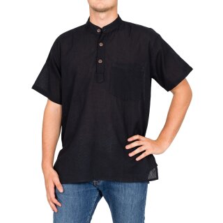 Einfarbiges Kurzarm-Stehkragenhemd aus leichter Baumwolle mit Brusttasche in fünf verschiedenen Farben